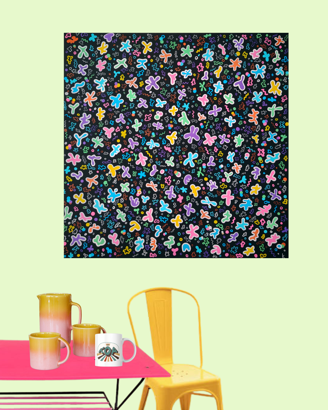 À la croisée du Pop Art, du graphisme intuitif et de la synesthésie, cette œuvre capture la joie de l’instant et la beauté du multiple. Elle invite à la contemplation autant qu’à la rêverie, offrant au regardeur une expérience sensorielle et vivante.