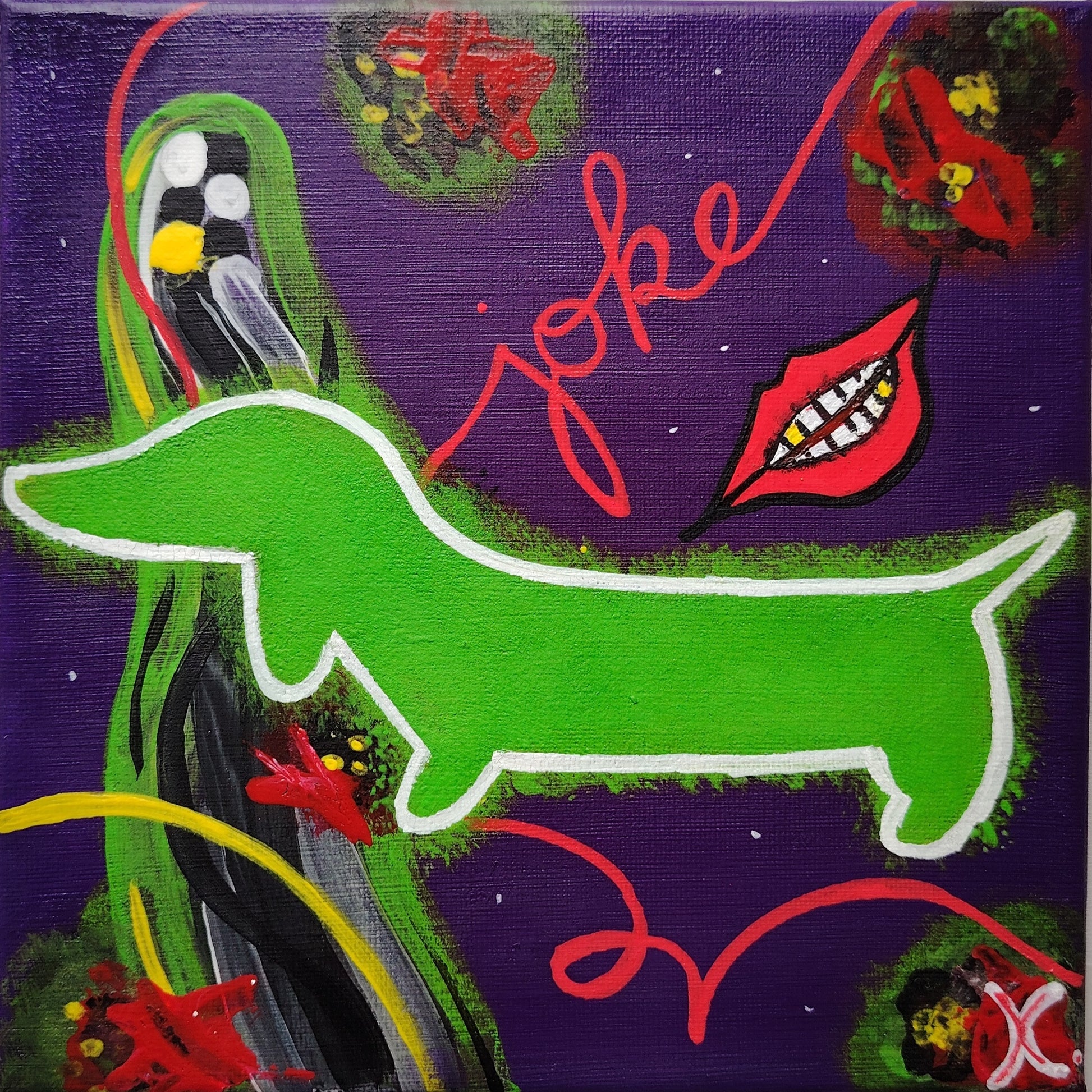 Et là vous vous dites : mais bon sang qu'est-ce qui lui a pris ? Pourquoi cette association improbable entre la figure du Joker de la maison DC Comics et de notre teckel habituel ?